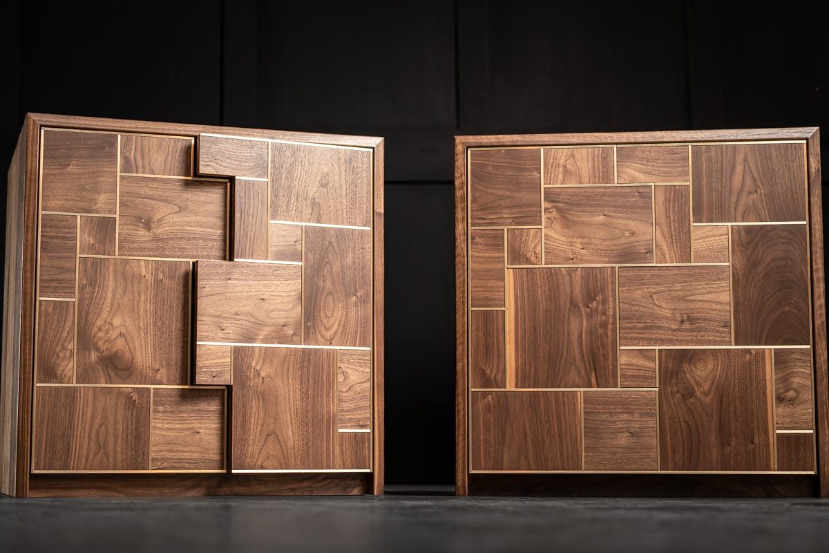 It’s been a massive month. I've been working on some walnut bedside tables with brass inlays, and thanks to the staggered effect of the walnut panels on the front of the cabinet, the two doors are actually hidden. I’m very excited about this video, and for the first time ever, I’ll be releasing plans to go along with it.
